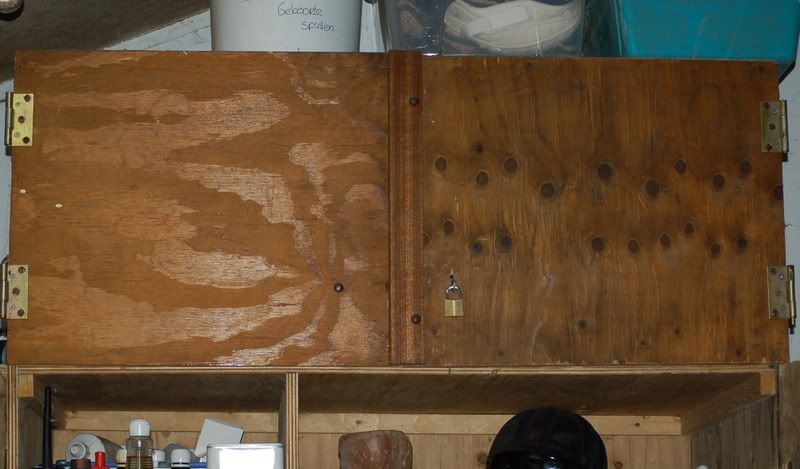 Is idd een zelfgemaakte kast. Niet de goedkoopste oplossing maar wel erg handig! Hij is gemaakt van hout. De kast staat binnen dus ik heb niet de moeite genomen het hout ergens mee te behandelen. Hij staat een stukje van de grond (op poten zeg maar) dus hij zal bij lekkage niet in het water komen te staan. Heb de kast nu 3 jaar en hij is eigenlijk nog als nieuw.