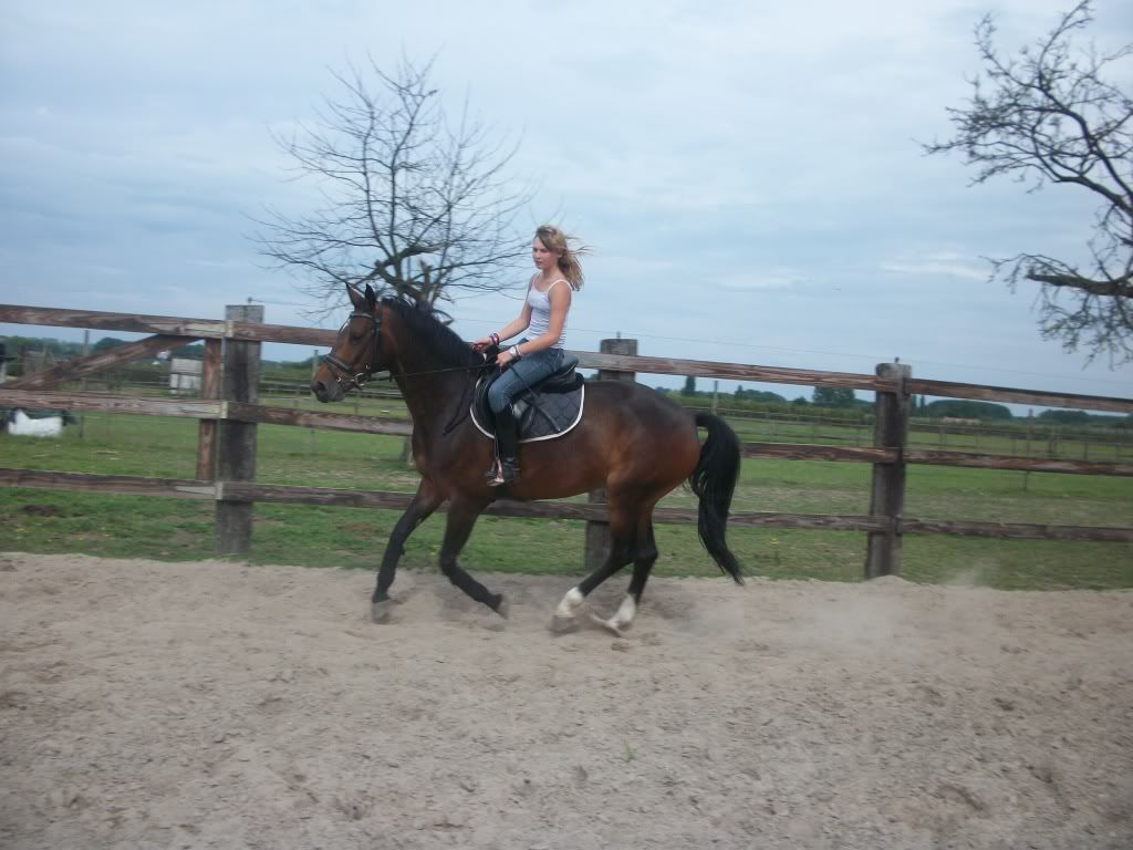 Op stal rijdt ze soms op de dekhengsten die ik altijd rijd.