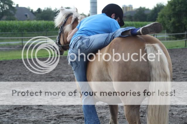 Ik kan bij voorbaat zeggen dat mijn man niet blij zal worden als ik deze foto's plaats, ik heb mij kapot gelachen om hem toen hij van de grond af zo op mijn pony wilde stappen zonder zadel.. Normaal gooit hij zijn been er zo over heen, maar nu lukte het dus niet