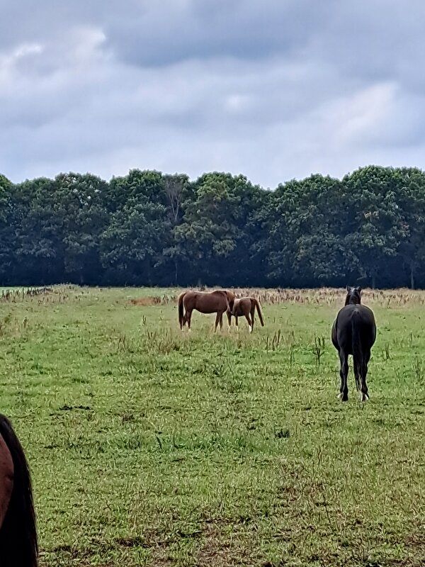 Nou, vandaag Adelin gebracht. Het was losklikken, en toen zei ze "Yoe!" En ging ze op onderzoek uit. Nog een kwartiertje blijven kijken, maar wij waren niet meer zo interessant. Gelukkig had ik nog even mijn Pennyafscheid, ze stond bij het draad, en toen we stopten met de auto+trailer om nog even doei te zeggen kregen we nog een bescheiden hinnik. Geen "neem me mee" hinnik, maar meer een "ik red me wel, fijne reis" hinnik. Dus met een goed gevoel weggegaan. Ik moet dit weekend even kijken hoe dik het is op de weg, maar anders rijd ik dit weekend nog even op en neer.