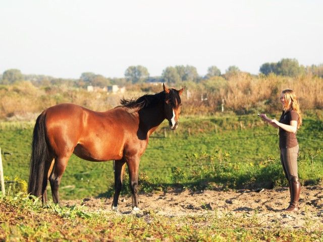 Sinds een tijdje ben ik bezig met mijn pony Wester met vrijheidsdressuur en het gaat erg goed. Hij vindt het super leuk en ik vind het ook een leuke afwisseling om te doen. Sinds pas kan hij steigeren en dat vraagt natuurlijk om mooie foto's :D Dus pony boven op de duin geparkeerd en klikken maar *-:)