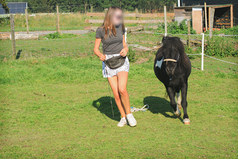 Toen ik Bandit net begon te verzorgen ging het allemaal niet helemaal lekker, ik reed toen die tijd op een manege en had alleen nog maar ervaring met manegepaarden. Bandit was totaal geen manege paarde en had echt zn eigen wil. Ik wist niet zo goed hoe ik daar mee om moest gaan en de eerste paar maanden hebben we daar ook wel mee gestruggeld haha. Ik kende ook alleen maar het manege paarden wereldje, maar kwam er al snel achter dat dat niks voor Bandit was. Wandelen lukte de eerste paar maanden ook echt niet want 9 van de 10 keer eindigde ik alleen
