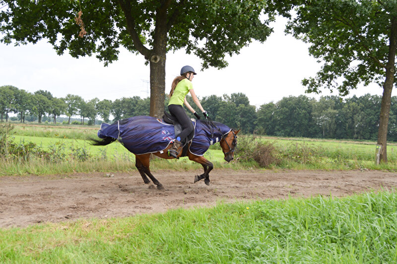 06. Losgooien. Melody hoef je eigenlijk bijna niet aan te sporen. Ze weet precies hoe het werkt en racet maar al te graag de wei door