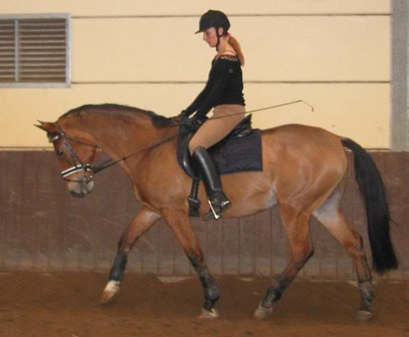 PKN_ schreef:Hmm.. Ik heb het gevoel alsof je stijgbeugels te lang zijn en je daardoor je achterkant van je kuit gaat omdraaien en je voeten er wat te diep insteekt. Vind je ook niet echt zitten en het lijkt me daardoor ook een beetje komen dat je je handen zo hoog en breed houd.