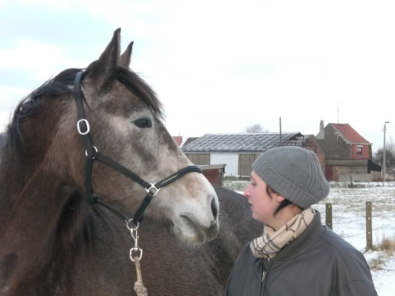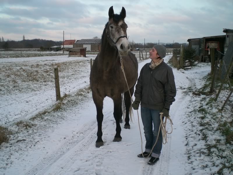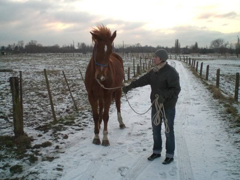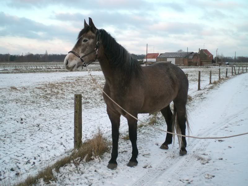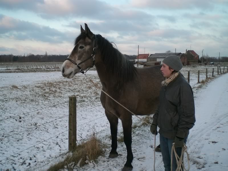 Ramses mocht ook op de foto, maar een zwart paard in de sneeuw is een brug te ver voor mijn cameraatje....