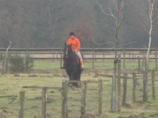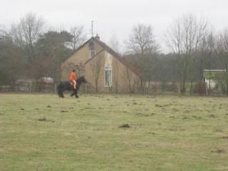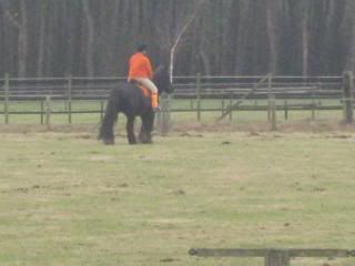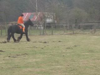 Ik heb mijn plannen dus omgegooid en verwacht van hem dat hij met z'n aandacht bij mij kwam. Dit is gelukt door veel overgangen te rijden en hem aan het werk te zetten, ik ben heel langzaam met hem gaan draven en hem nagevelijk gaan rijden. toen dat gelukt was waren helaas de batterijen van het fototoestel leeg.