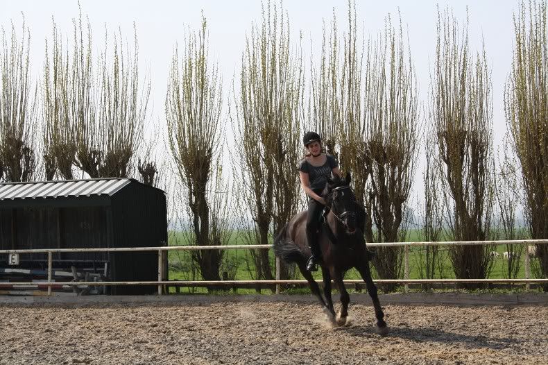 Vandaag voor het eerst contragalop geprobeert, ging eerste paar keren niet goed, ik verplaatste net iets mijn gewicht waardoor Jazz een wissel maakte, maar het is ook gelukt