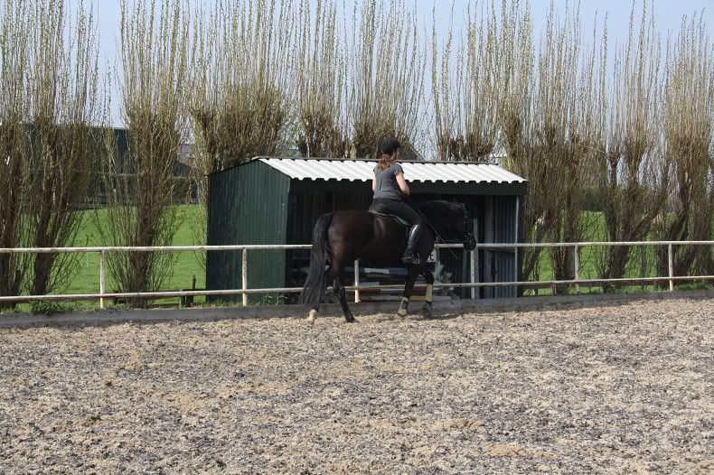 Als hij dan wat losser is, gaan we weer halthouden, stapje achterwaarts en vanuit de volgende houding verder rijden: