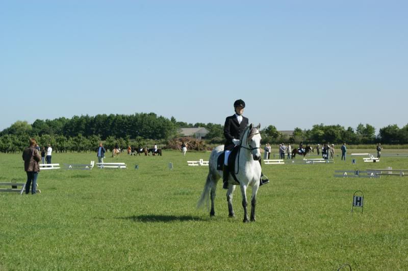 We deden onderling mee, omdat er helaas bitloos niet gestart mag worden. Na vandaag zou ik zeker een startkaart aangevraagd hebben, ze was zo braaf! Voor de eerste keer, met allemaal andere paarden enzo en veel mensen. Super deed ze het. Ik was bang dat ze sterk zou worden en gek zou gaan doen, maar niks was het geval. Ze was super relax, en we hebben het proefje vrolijk doorgereden. We zijn natuurlijk in de B begonnen.