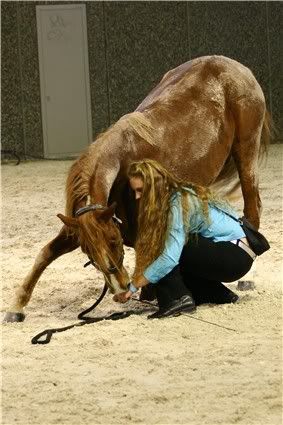 Heb na de clinic nog even bij de ring staan kijken met Sjors naar Honza en heb hem toen weer in zijn paddockje gezet. De rest is binnen even over de beurs gegaan en ik heb even de chaos opgeruimd en wat gegeten. Het laatste uurtje hebben we Sjors weer op de trailer gezet en zijn we nog even met zijn allen naar binnen geweest, om een leuke dag af te sluiten. Hier hebben we de tweede vrijheidsdressuurclinic nog even gezien en de erg geslaagde clinic van de mensen van Pat Parelli.