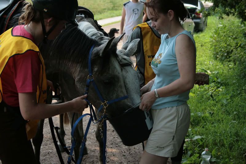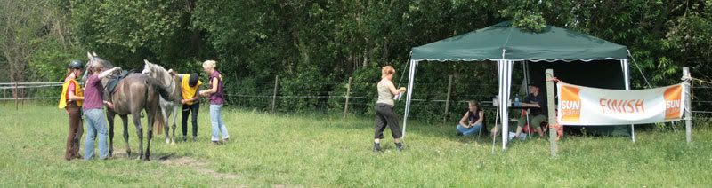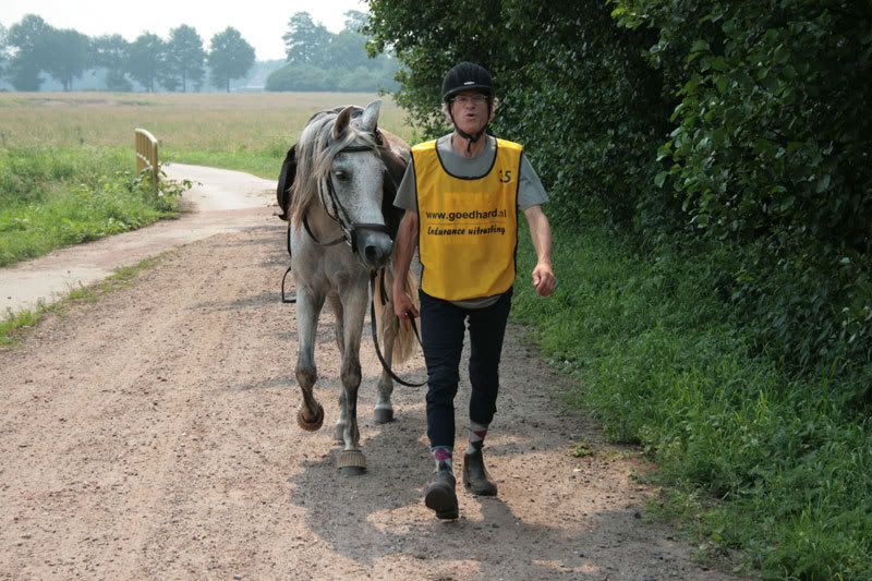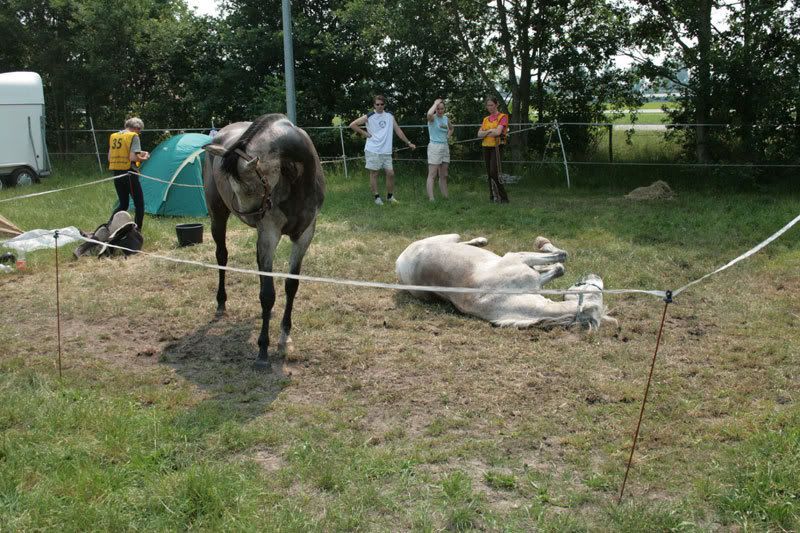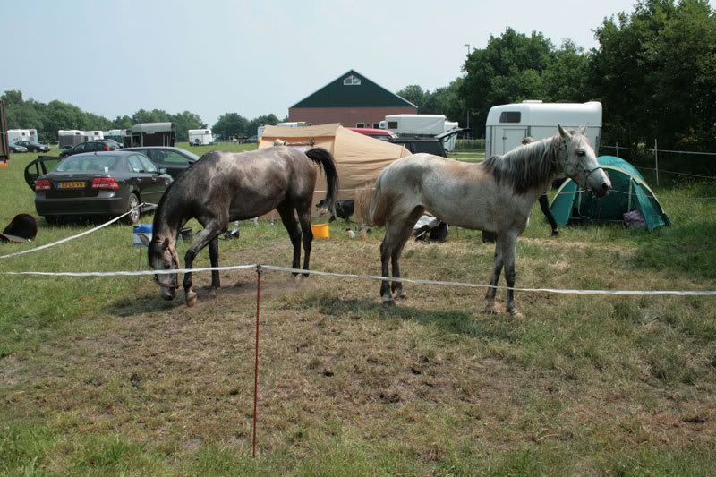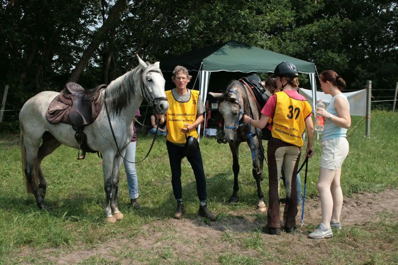 oliebol dus! Snel klommen we weer te paard en en bij de PA aangekomen, leek het ons beter om onze paarden dus maar niet meteen aan te bieden. Eerst even het nodige water om af te koelen.