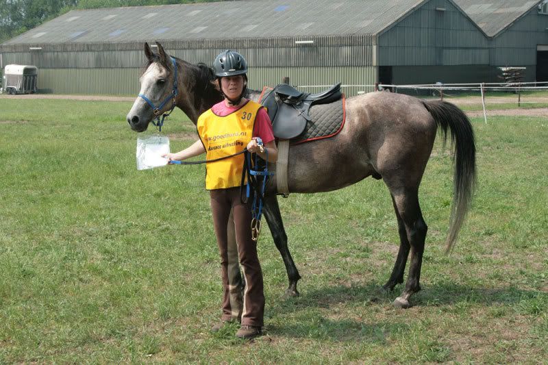 Na het aanmelden bij het secretariaat lieten wij meteen de paarden maar keuren om snel een vroege starttijd te kunnen aanvragen.