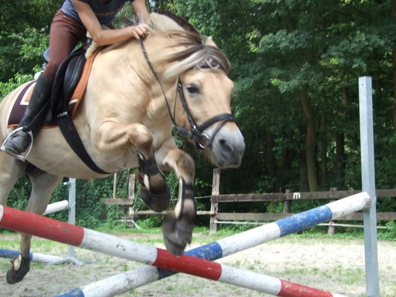 Ik heb ook nog even gesprongen, wat tersk heel eng vindt. Hij werd gelijk nogal heet, en ik ben er dan ook een paar keer bijna afgevallen omdat hij zo erg stijgerde. Maar hij heeft maar 2 keer geweigerd, wat ons heel erg meeviel