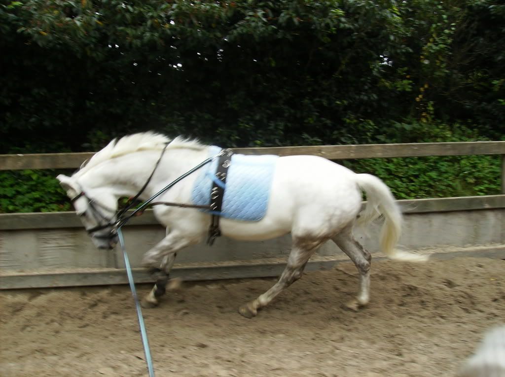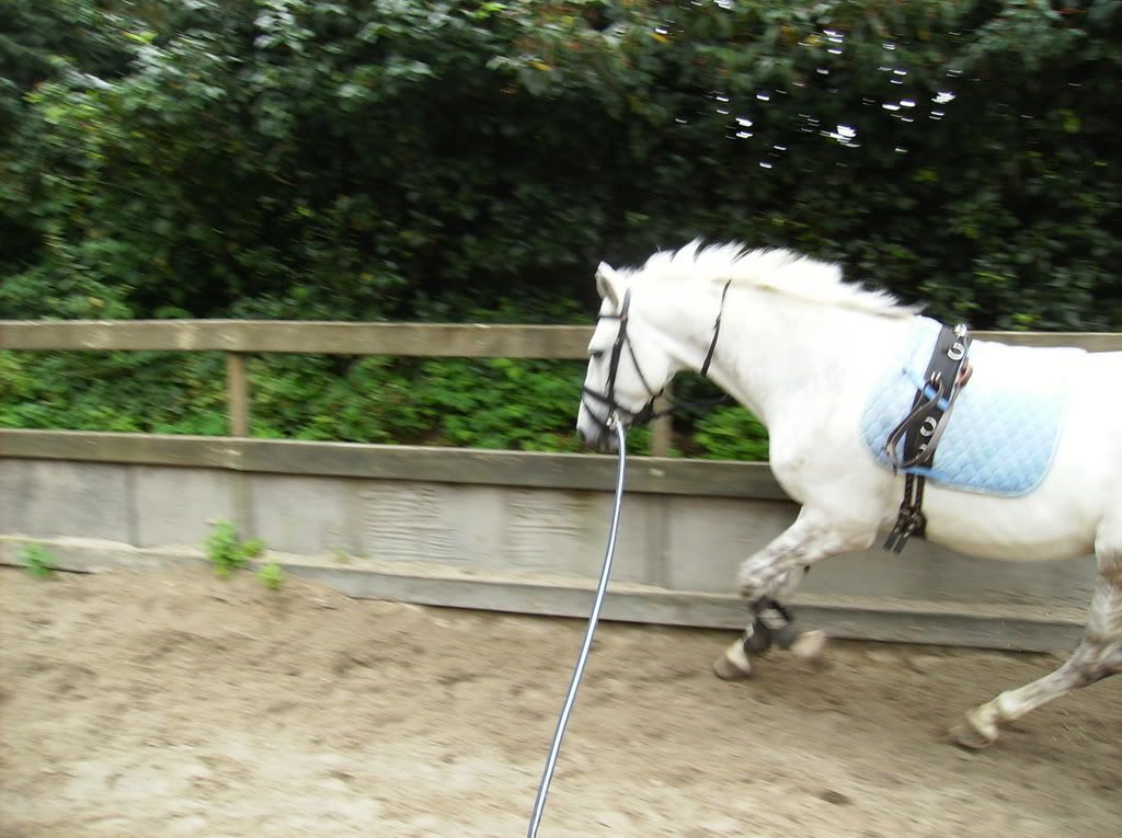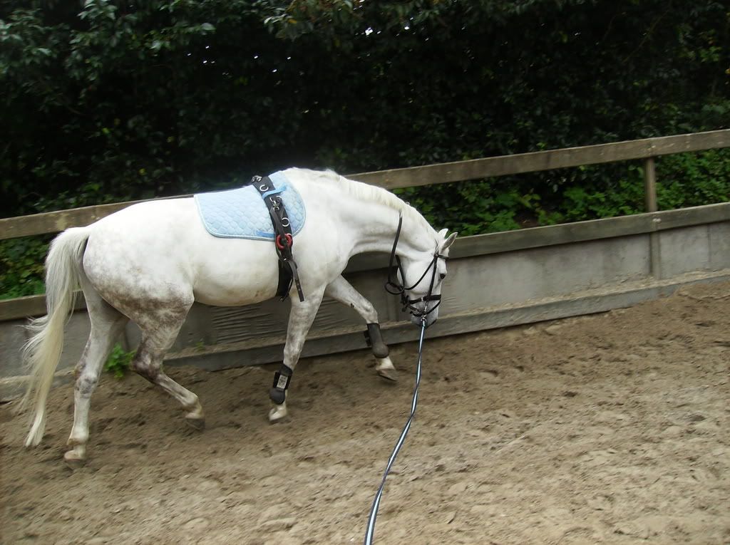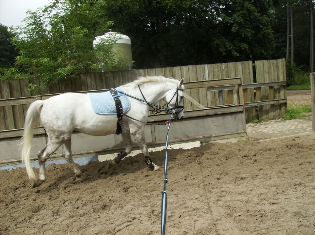 Na het loswerken heb ik de bijzet laag gezet!!! zodat ie eerst helemaal goed over zijn rug kon lopen!!
