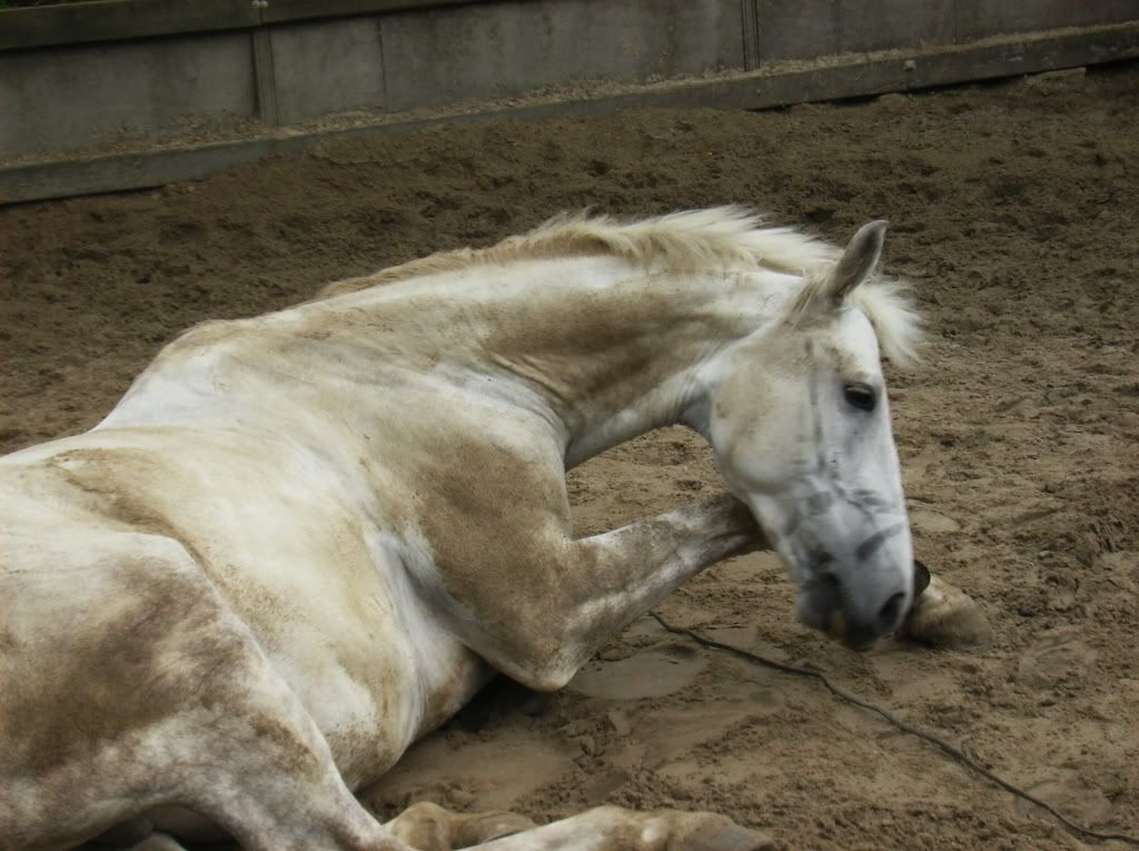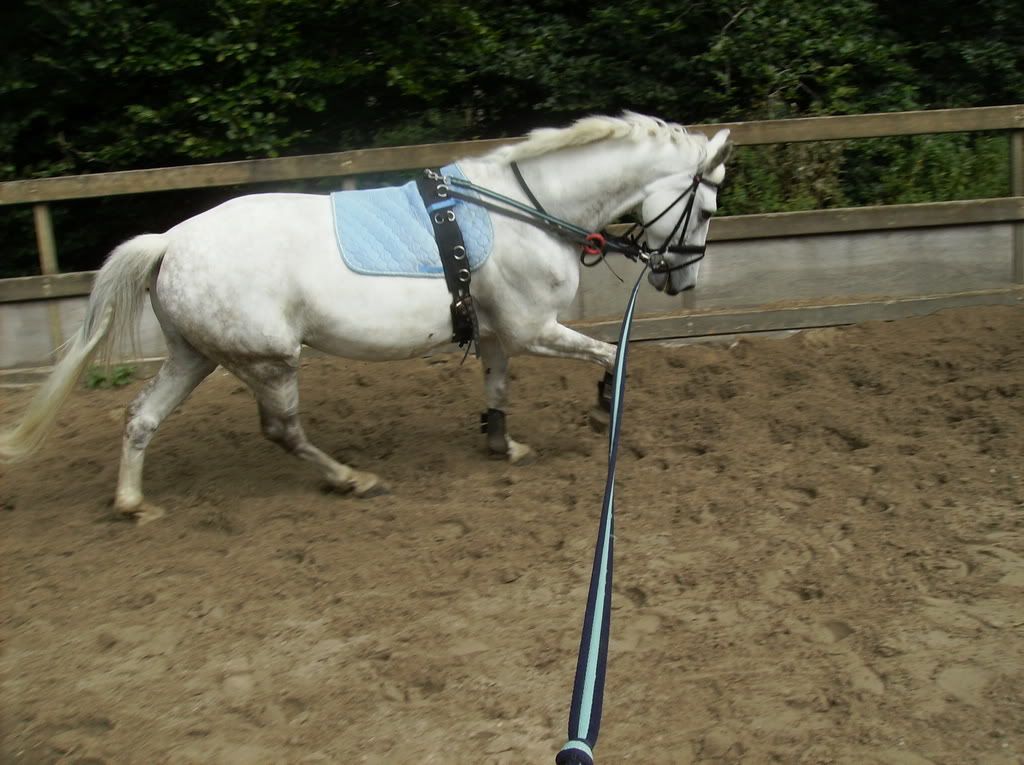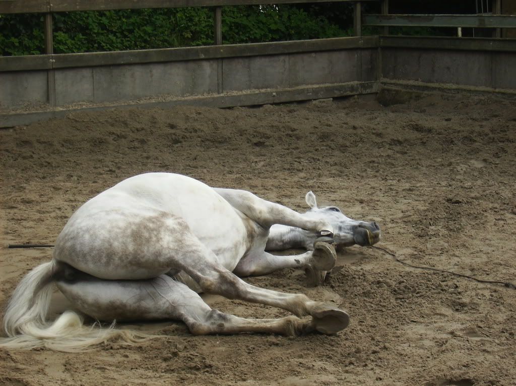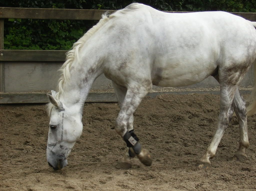 Na het loswerken heb ik de bijzet laag gezet!!! zodat ie eerst helemaal goed over zijn rug kon lopen!!