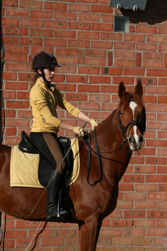 We trainen nu vooral op de basis en het korter bijeen rijden (is nogal lang paard), achterhand erbij houden en nageeflijkheid
