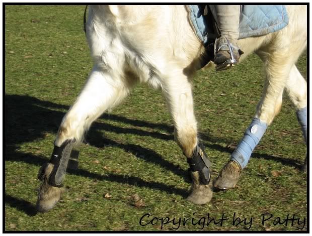 Nou, ik zou toch andere schoenen aan doen, ook al had je puma's aan. Als ik je zo zie hangen voor die hindernis, dan had je ook kunnen vallen, blijven hangen pony schrikt van je en jij sleurt mee. Maar goed, lekker eigen verantwoordelijkheid, ben je oud genoeg voor Knipoog