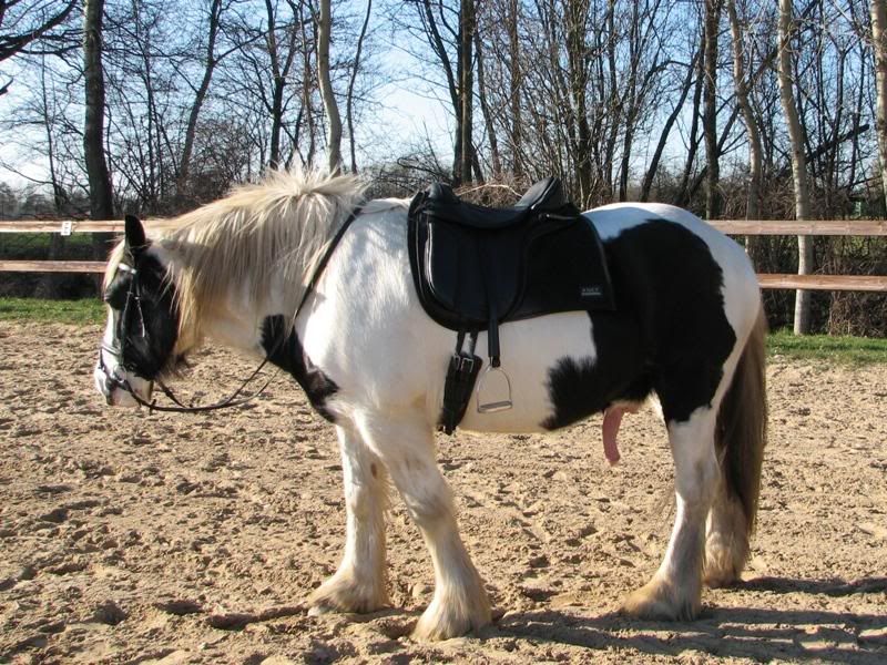 De Barefoot London. Een joekel van een zadel, zeker vergeleken met mijn wintec-je. Maar op deze joekel van een tinker staat zo'n groot zadel super.