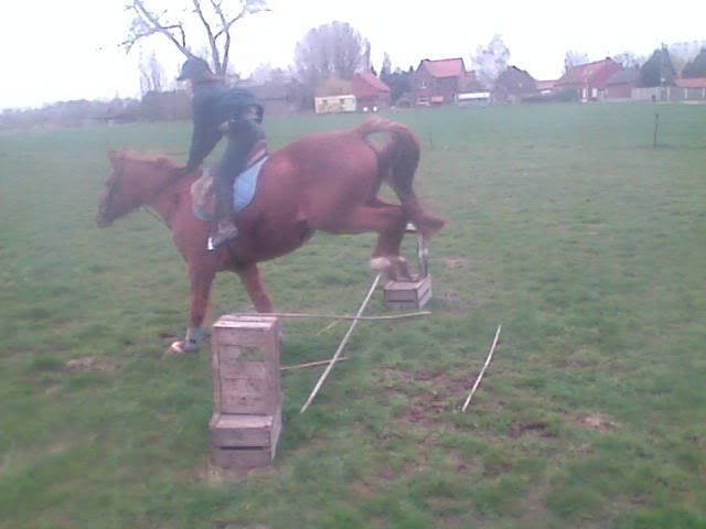 28. Dan zijn we begonnen met springen,de rekker uitgedaan en martingaal aangedaan,en dan ik eerst erop !