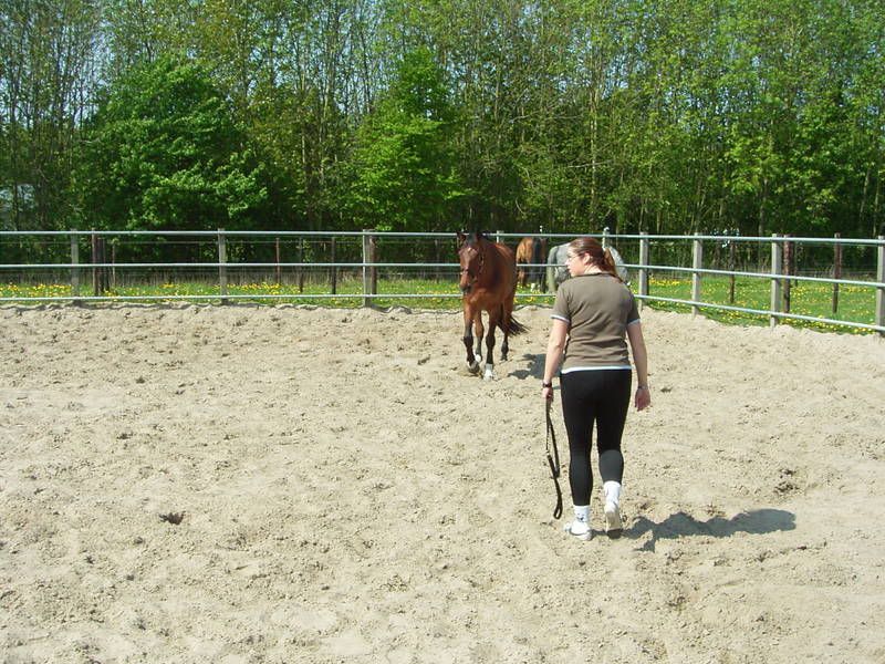 Ze hebben samen al heel wat spanningen overwonnen, en dit was pas de 3e keer bij hun nieuwe huisje. Een manege waar genoeg te zien en te doen is. Daarom heeft Patries de eerste 2 keer met slof gereden om die spanning niet op te zoeken. Die is er halverwege af gegaan, en Vallie heeft dit super opgepakt!