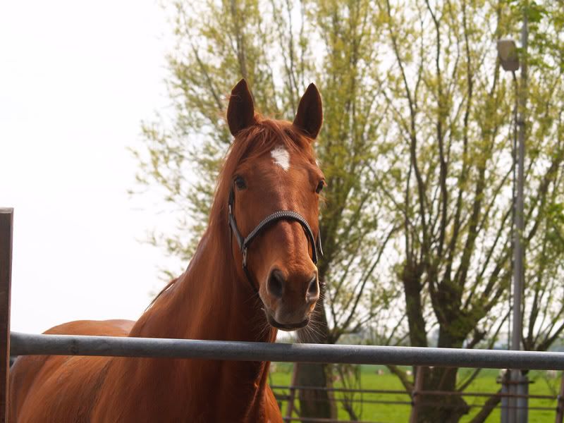En toen, kwamen er 2 mensen die het ook zagen, die hun andere paard daar hadden staan, en die hadden haar gekocht. Ze hebben haar 6 maanden in Lisse gezet, op een landje, om bij te komen van de stress. Wat geholpen heeft. Super! OK dan! Ze kijkt helemaal vrolijk uit haar oogjes, ze is heel wat kilootjes aangekomen, en zit lekker in haar vel!!!! Lovers