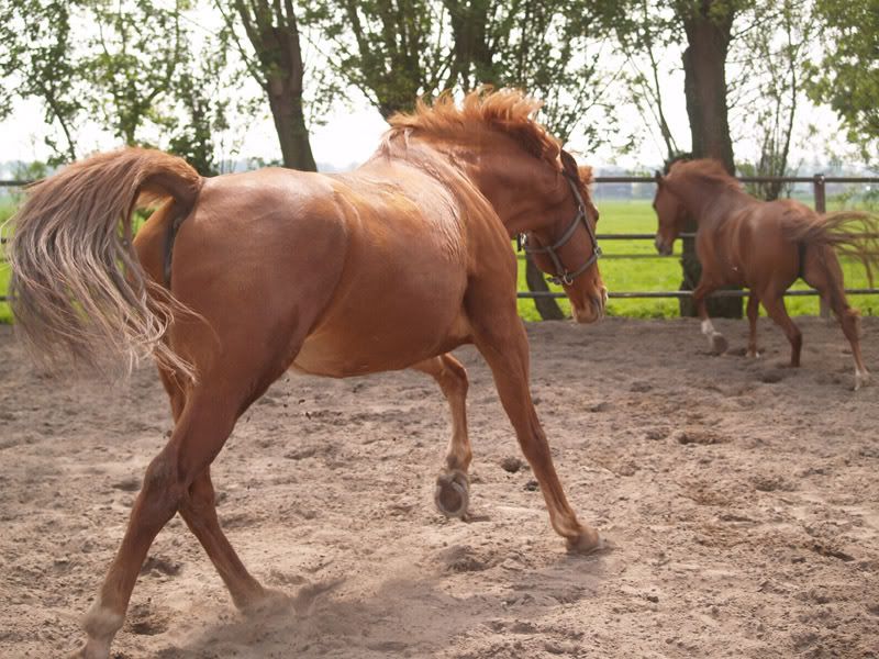 Saskiakefie; Inderdaad, en sommige paarden pikken het, als ze naar beneden/in de houding ''getrokken'' worden, maar bij haar moet je daar niet eens aan denken. Knipoog