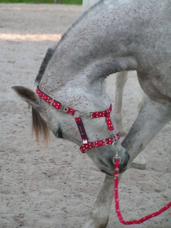 Heel veel arabiertjes durven wel eens op de voorhand rijden, dus die van jou is zeker niet alleen. Zit zelf met hetzelfde probleem, moet veel op die achterhand trainen, maarja het is altijd gemakkelijker gezegd dan gedaan. Heel mooi schimmeltje, rijdt netjes, alleen jammergenoeg dat die van jou ook geen uitzondering is op het beruchte voorhand-lopen .