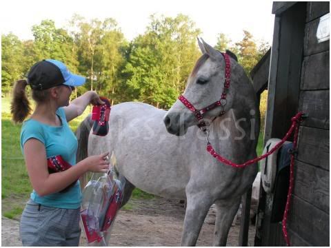 Uiteindelijk heb ik superleuke peesbeschermertjes gevonden voor Kyara met bijpassend halster+touw en een dekje, een jas, een pet, een rijbroek.. ROFL