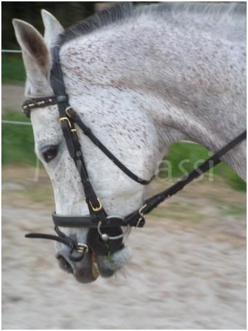 Wat een leuk dier zeg! Persoonlijk vind ik je neusriem veel te laag zitten waardoor de sperriem de neus een soort van dicht knijpt.