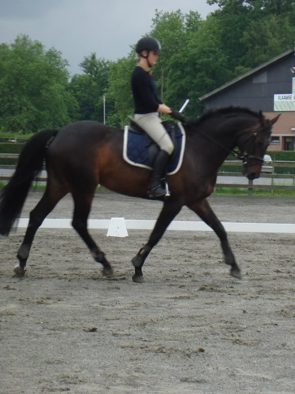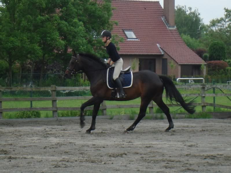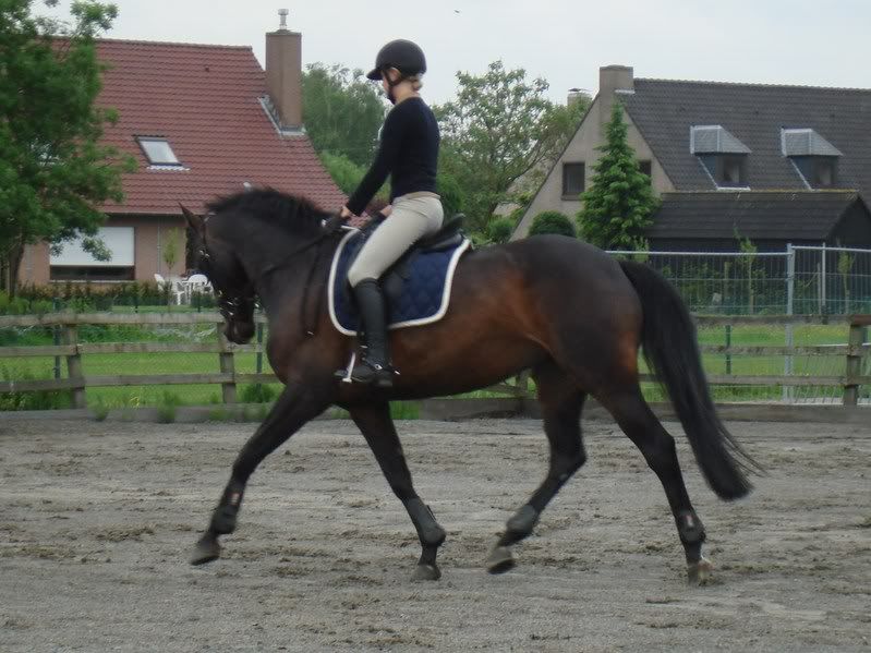 Het zier er erg netjes uit! probeer alleen rechtop te blijven zitten, op sommige foto's trekt hij je naar voren probeer dit op te lossen door hem op zijn eigen benen te laten lopen door gewoon de teugels wat losser te laten. succes met em