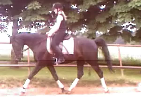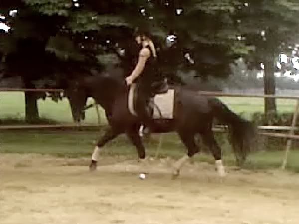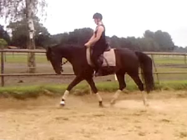 Linkergalop: Hierbij is ze pas sinds een week ong. wat stukjes aan het zakken. Ze heeft nogal moeite met haar evenwicht hierin goed te vinden.