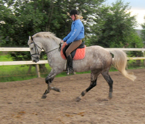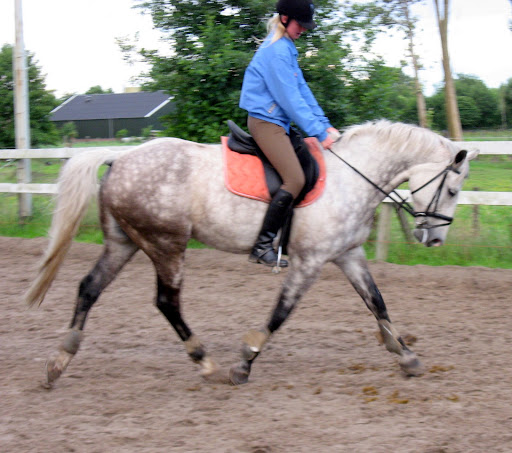Aangezien ik thuis geen bak heb rij ik bij een stal een eindje verderop. Dit is ook de reden dat er geen foto's van het instappen zijn. Verder heb ik nu sinds een maandje een nieuw zadel omdat het oude niet goed meer lag vanwege de verandering van de bespiering in zn rug.