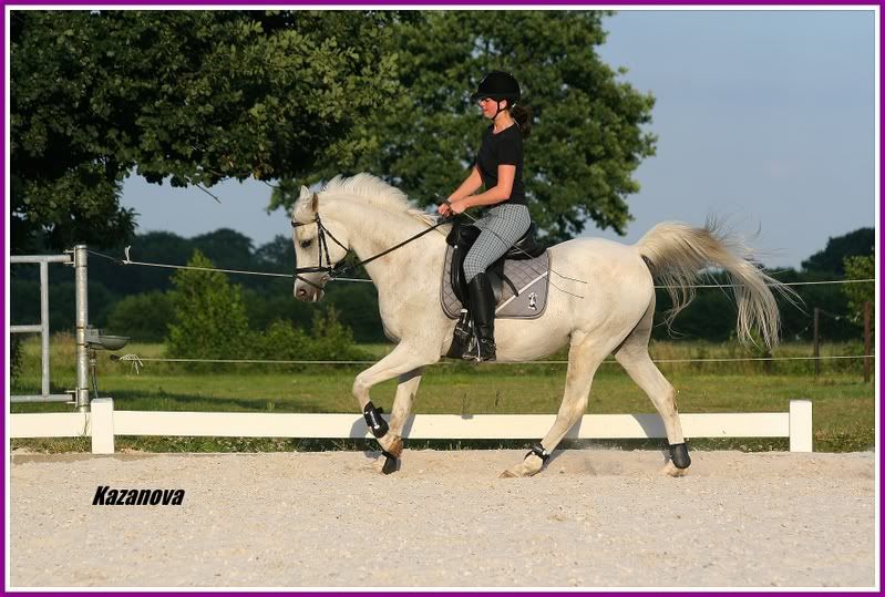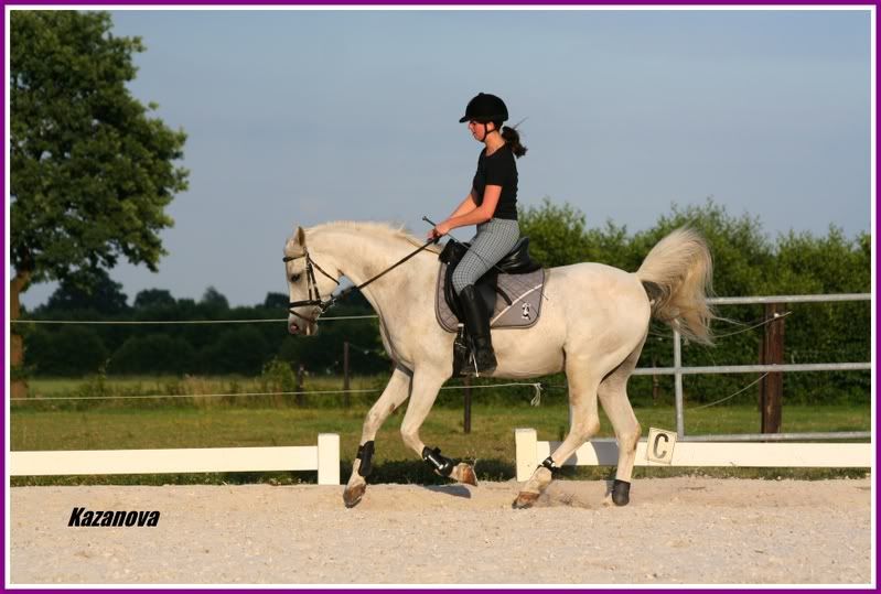 Hij was in het begin wel wat zwaar op links maar dat was snel over. Ik heb veel overgangen gereden om hem aan het been te krijgen. De galop was nog steeds moeilijk maar niet alles kan in 1 keer.