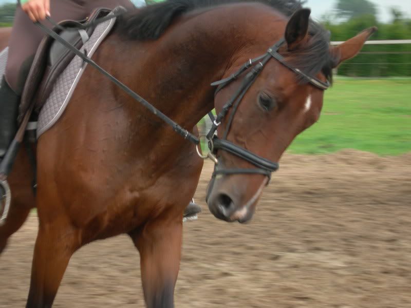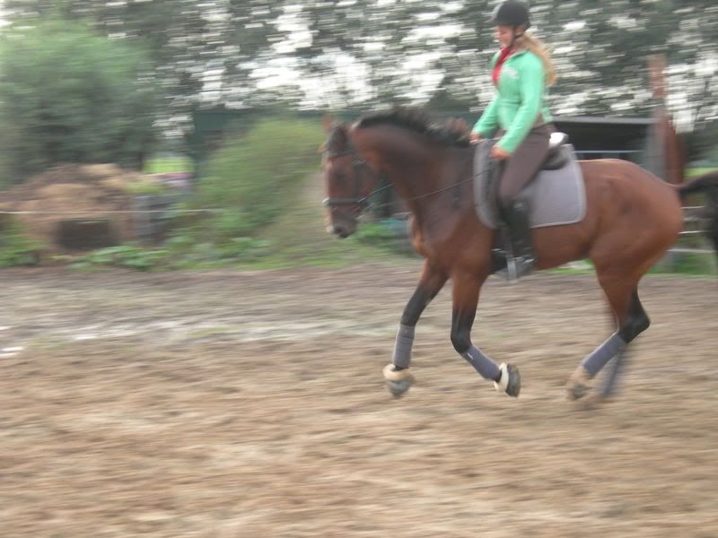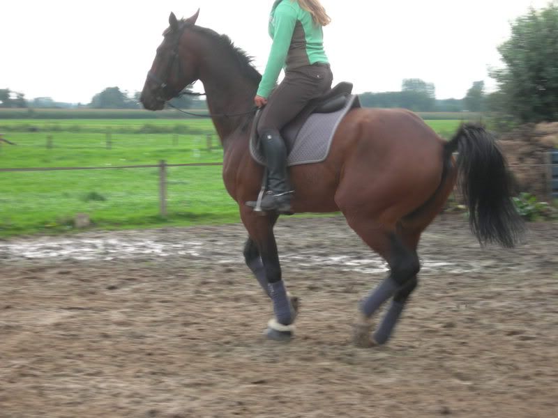 plus dat doordat jij naar voren zit, je paard eerder op de voorhand valt/gaat lopen... en dat is zonde, want in de galop zie je dat hij best opwaardse bewegingen heeft....