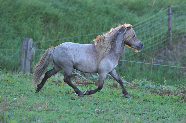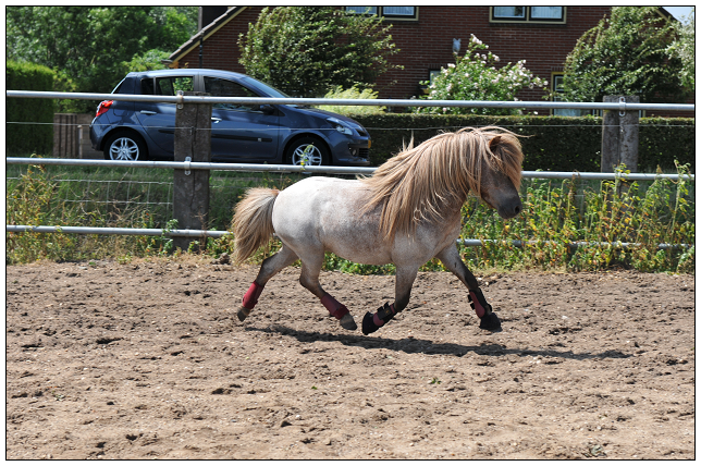 Zijn galop zit heerlijk ja, is zijn beste gang. Draven kan hij heel goed, maar zit minder makkelijk, hij wil dan heel groot gaan draven. Gevolg is dat ik niet kan zitten en hem tegen ga houden