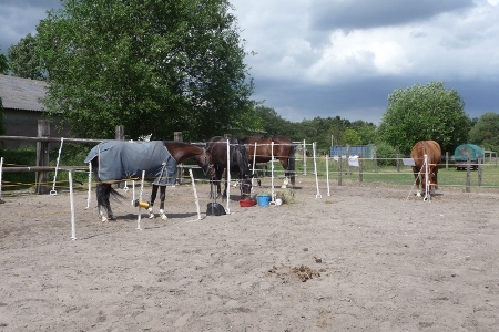 Alle bepakking had ik al klaar gezet, dus ik hoefde alleen even mijn paard te voeren en vervolgens zelf nog ontbijten. Verder ook mijn lunch klaar gemaakt om mee te nemen. Ik was lekker op tijd klaar. Tammy nam dus nog even de tijd om zich vol te stoppen. Die was bang dat ze de rest van de dag niets meer zou krijgen ofzo