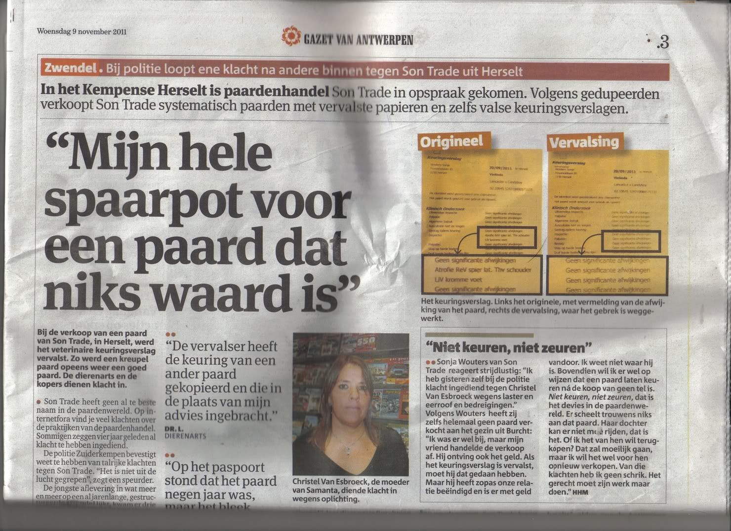 edit: Ik heb ook de naam verwijderd van de stal uit de tekst.