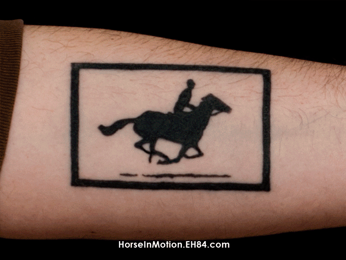 Het werk van fotograaf Eadweard J. Muybridge, die de bekende animatie 'Horse in Motion' maakte, is onsterfelijk gemaakt in een reeks van elf tatoeages. Evan Hawkins, die het project bedacht, bracht de individuele tatoeages samen in een gif-animatie, waarmee hij het werk van Muybridge tot leven bracht.