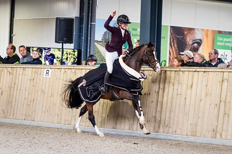 Het absolute hoogtepunt volgde later op de dag, toen Sophie en Nibbit opnieuw in de baan verschenen voor de uitreiking van de extra overall prijs. Deze prestigieuze prijs – een Prestige-zadel dat later op maat zal worden aangemeten – was bestemd voor de pony met de hoogste dagscore bij de aanlegtest. Onder groot applaus zadelde Sophie haar Nibbit nogmaals op om de prijs in ontvangst te nemen. De uitreiking werd met zichtbaar enthousiasme ontvangen door ruiters, publiek en organisatie en benadrukte nogmaals de bijzondere kwaliteit en toekomstverwachting van deze combinatie.