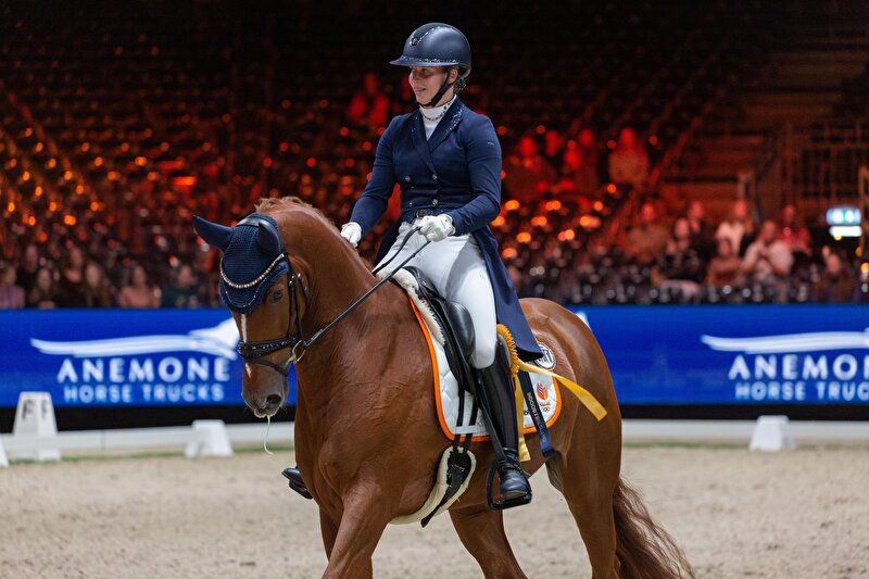 Na de pony’s mochten ook de Young Riders hun kür op muziek rijden op de tweede dag van Indoor Friesland 2025. In de Anemone Horsetruck Prix toonden elf combinaties hun dans op vier benen aan de jury. Net als gisteren in de Team Test bleef de winst in Nederland en was zelfs de hele top drie Nederlands. Anniek van Dulst en haar achtjarige ruin My First Choice (v. First Choice) behaalden de mooie score van 74.20%.