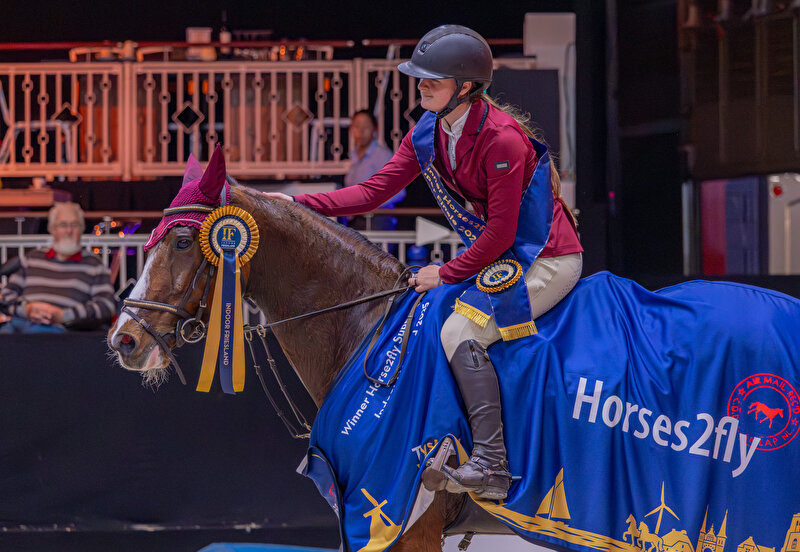 Nadat ze afgelopen woensdag al de Horses2fly 1.10m finale won, was ze nog wat verlegen en stil, maar na het winnen van de Horses2fly Super Finale lachte ze van oor tot oor. Met haar paard aan haar zijde, beantwoordde ze onze vragen: “Dat komt doordat mijn paard er nu bij is, dat geeft mij een vertrouwd gevoel, hij is mijn grootste vriend. Ik had dit niet helemaal verwacht, maar natuurlijk wel gehoopt. Ik had het plan van vijf naar zes binnendoor te gaan, maar van drie naar vier was toch beter besefte ik tijdens mijn rit. Dat had niemand nog gedaan en ik moest als laatste, dus toen dat lukte, wist ik dat het goed zat.”