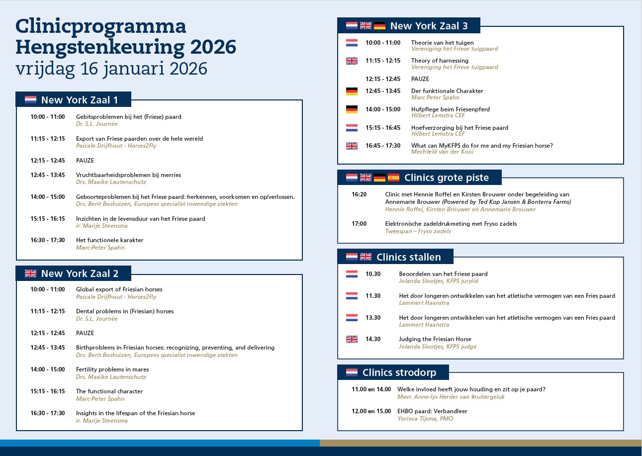 Met 230 pagina’s is de HK-catalogus voor 2026 lekker dik geworden. Alle hengsten die zich gaan presenteren op 15, 16 en 17 januari staan er keurig in vermeld. De catalogus is voor € 17,50 te koop bij het WTC in Leeuwarden of te verkrijgen op het KFPS kantoor in Drachten.