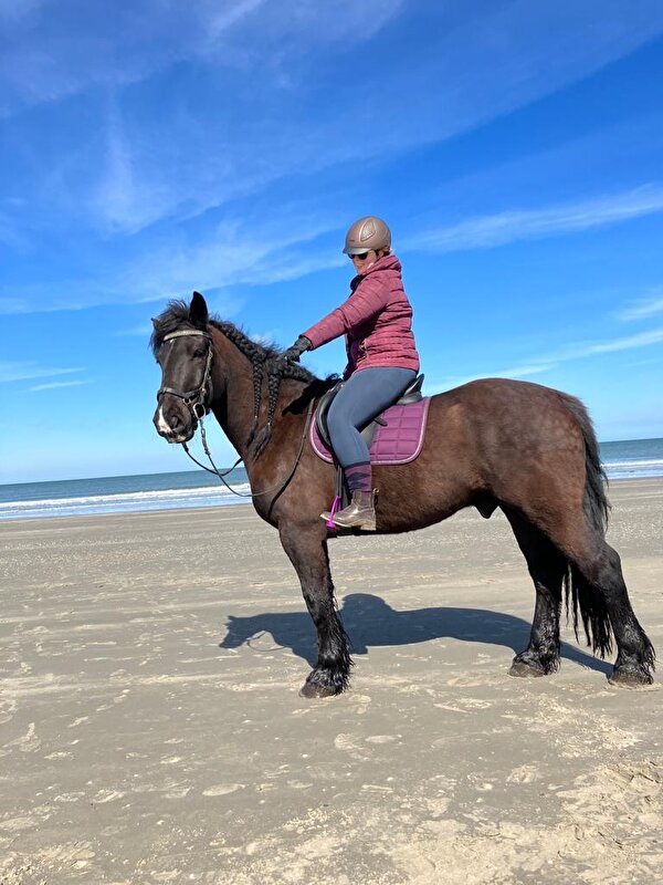 Ik rijd nog niet volledig, vooral door mn knie. Ik hoop deze zomer wel weer een galopje te kunnen maken op het strand, zoals we hiervoor wekelijks deden."