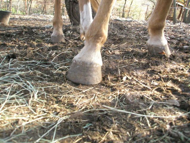 De eerste serie is van 18 oktober, niet lang nadat de hoefsmid is geweest om te beslaan. Mijn paard staat alleen voor op ijzers ivm gevoelige zolen. Achter op blote voeten en die houd ik zelf bij.