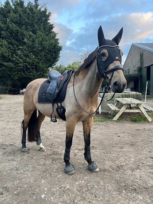Deze is van Felix Buhler (Kramer). Ik heb wel het idee dat het wat doet. Maar ik denk dat hij niet veel meer doet dan een geluidsdempend oornetje, dit blijft alleen veel beter zitten. Ze heeft echt gigantische oren en als ze die met een dempend oornetje naar voren doet als ze afgeleid is gaat hij telkens bijna onder mijn kopstuk vandaan. Deze doet dat gelukkig niet.