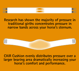 groot voordeel is ook dat de druk niet over de hele singel verdeeld wordt ,maar veel meer bewegingsvrijheid in zijn ribbenkast geeft en de druk op de plaat in het midden komt . dit ligt op het borst been en hindert het paard veel minder.