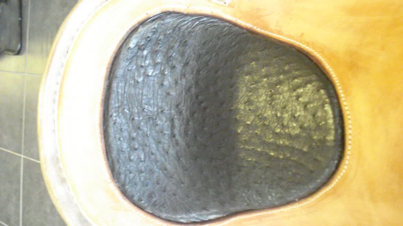 sinds zaterdag ben ik de trotse eigenaar van een wade zadel. Het gaat om een srs zadel custom made. Volgens de groothandel mag je er niets aan doen, maar hij is aan de fenders vrij stug. zou ik er echt niets aan mogen doen ? als het regent gaat dit toch vlekken geven ? De zit is van struisvogel en een heel deel van het zadel is opgeruwd leder.