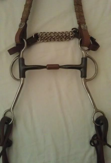 Om de teugel aan de middelste ring vast te maken ols tussenstap is sowieso vrij zinloos, dan kan je er net zo goed en gewonen snaffle inhangen, dit word volgens mij nooit gedaan, ik heb het in elk geval nog nooit gezien, hoofdstel en kinketting aan de bovenste ring en teugel aan de onderste. Bitte met shanks zijn ook om met een hand te rijden, als je de teugel aan de middelste ring vast zou maken heb je dus niet een beter stuur als met een gewone snaffle