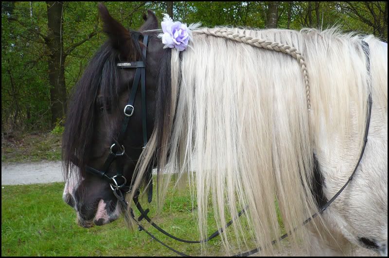 Zoals jullie kunnen zien is de neusriem rond gevlochten en vrij dun, hij werkt dan ook best pittig in, ivt de Pardoes. Ik heb hiervoor een bontje gekocht maar dat heeft niet het gewenste effect en is daarbij ook niet fijn voor mn paard, op den duur gaat het broeien en jeuken daaronder, zeker met wat warmer weer.