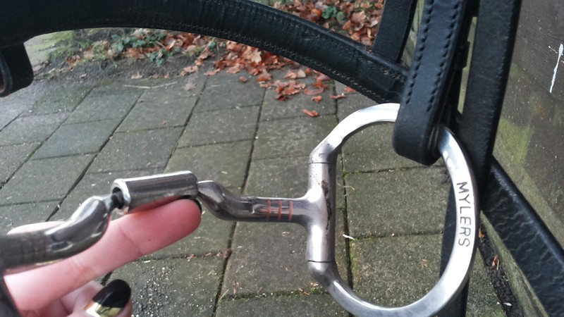 Ik heb een myler bit level 2 en ik heb het bit altijd zo in de mond liggen dat het middenstuk naar voren wijst. Nu zeiden stalgenootjes me vandaag dat het gebogen middenstuk juist naar achteren moet wijzen in de mond..